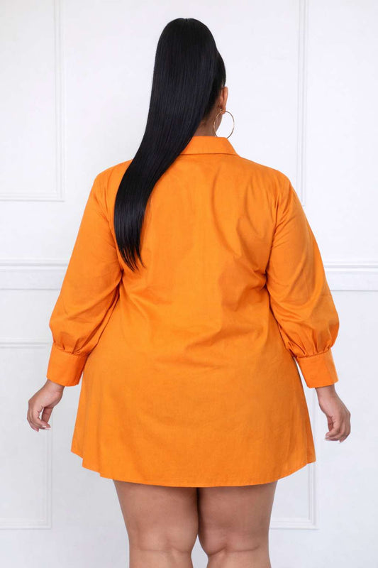 PLUS SIZE" ALL TIED UP BIG BOW SHIRT DRESS" ORANGE-15