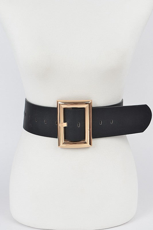 Rectangle Buckle Plus Size Belt-BLACK/GOLD