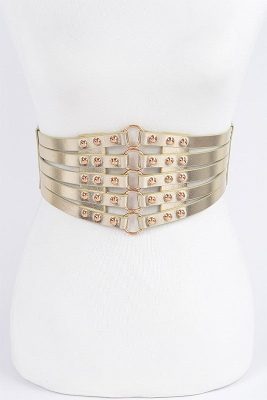 Metallic PU Metal Studded Corset Plus Size Elastic Belt