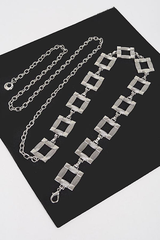 Flower Metal Double Layered Plus Size Chain Belt-BLUE/SILVER