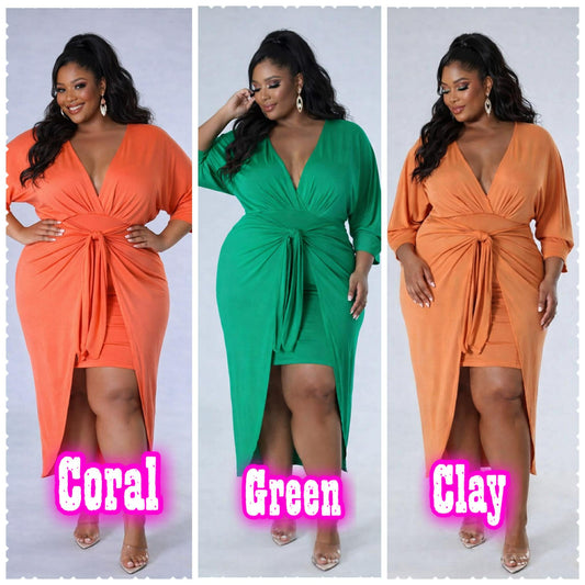 PLUS SIZE JUST A LIL TWIST WRAP DRESS-CORAL