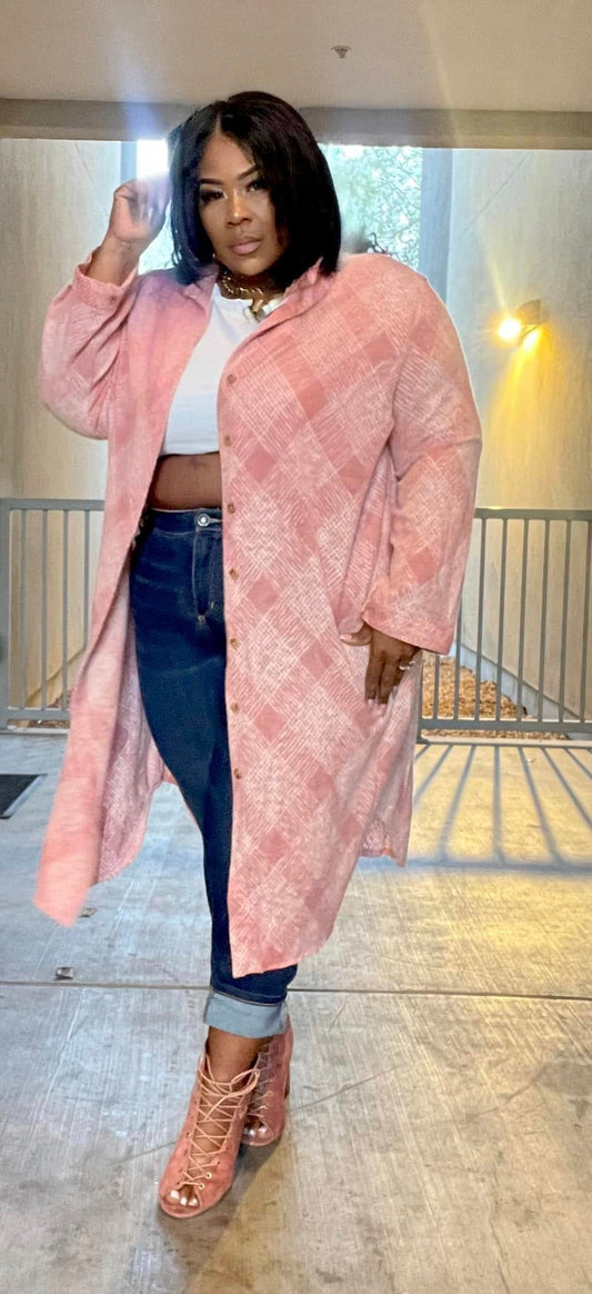 PLUS SIZE Plus Knitted Plaid Soft Long Jacket (mauve)-64