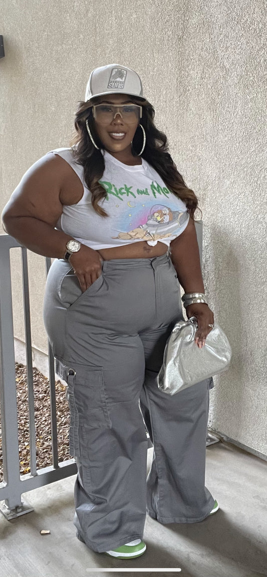 PLUS SIZE WIDE LEG STRAP TRIM CARGO PANTS-GREY