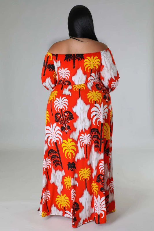 PLUS SIZE PRINTED OFF SHOULDER LONG DRESS-28