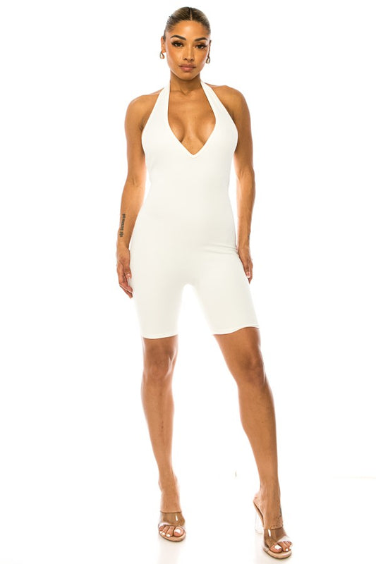 PLUS SIZE FAIX LEATHER HALTER ROMPER-08