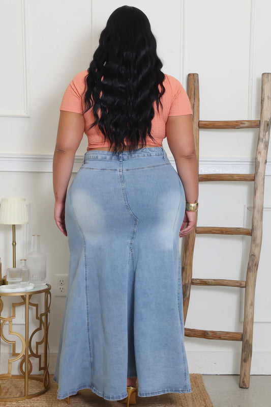 PLUS SIZE "Dream Big " FLARE STRECTH DENIM SKIRT-13