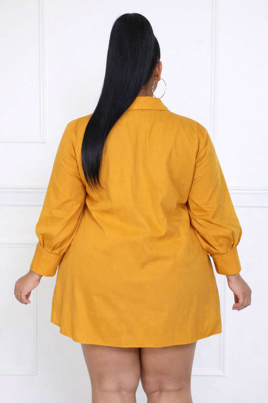 PLUS SIZE" ALL TIED UP BIG BOW SHIRT DRESS" MUSTARD-15