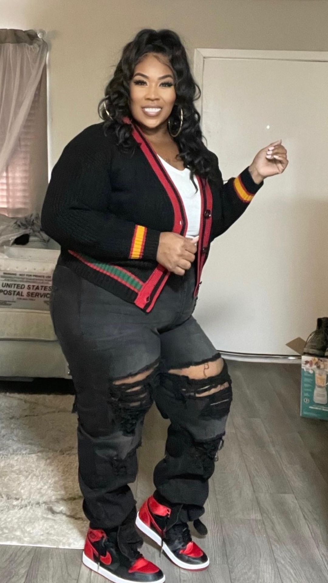 BLACK PLUS SIZE TIE BOTTOM FLARE JEANS8456