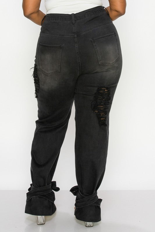 BLACK PLUS SIZE TIE BOTTOM FLARE JEANS