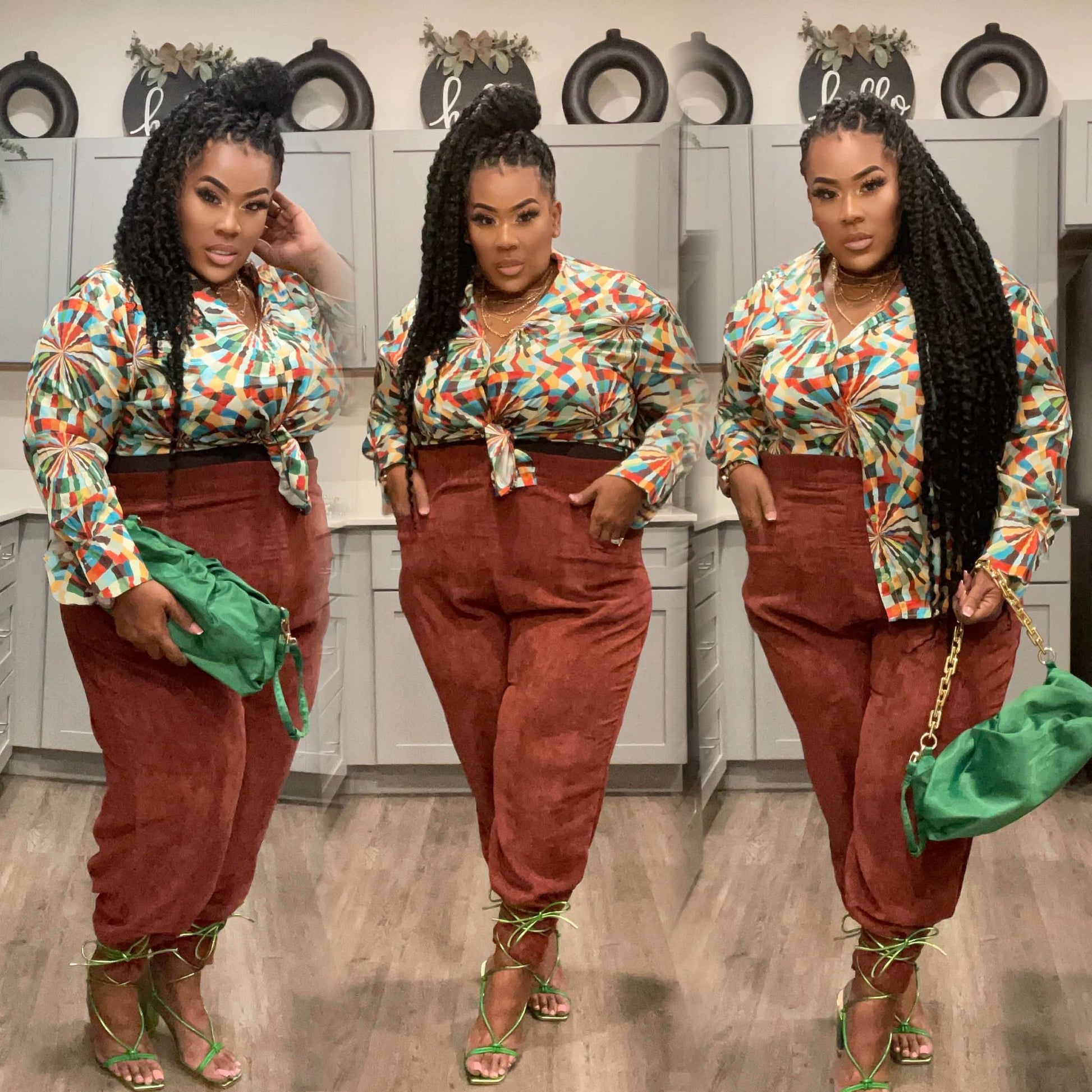 CORDUROY HIGHWAIST FRONT POCKET PANTS-RUST