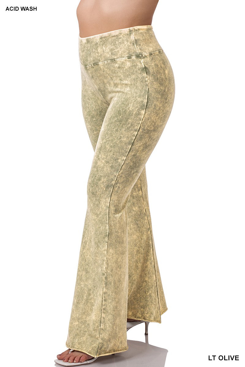 PLUS SIZE mineral washed high waist raw edge hem pants