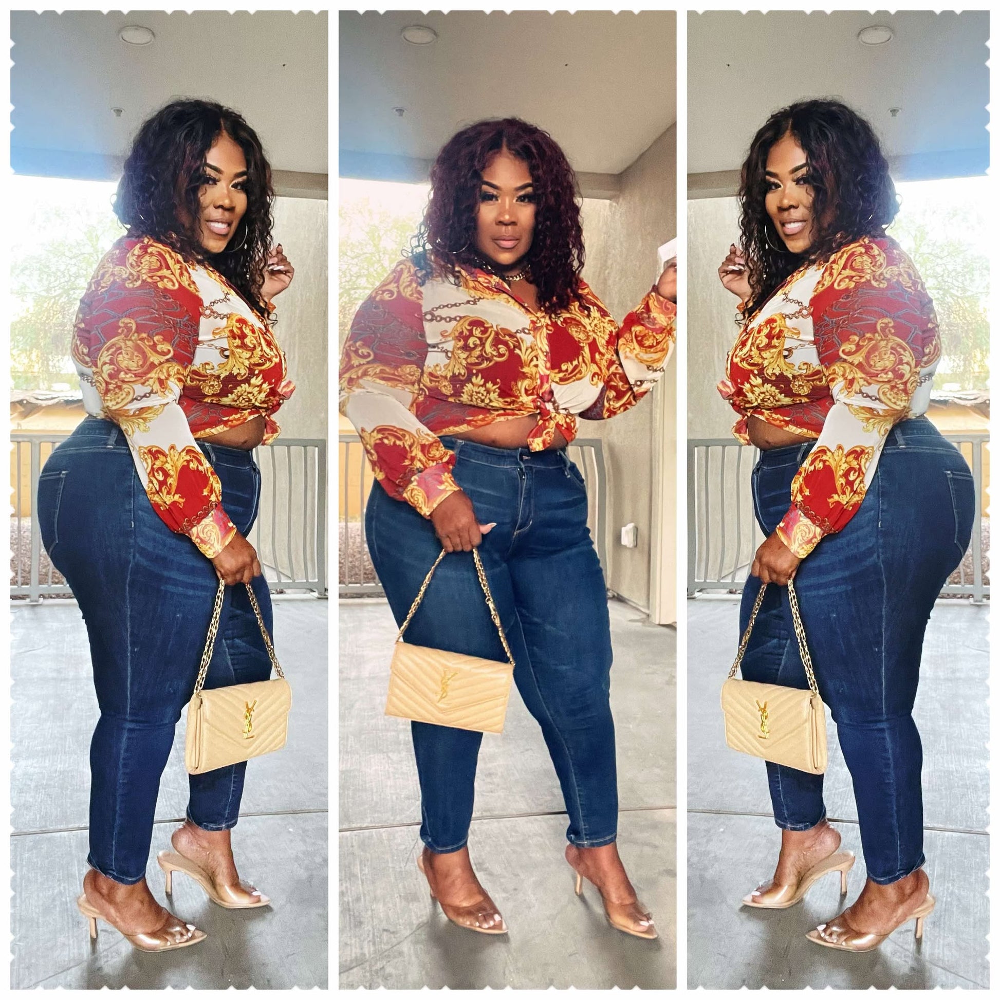MESH ROYAL PRINTED LONG SLEEVE BUTTON UP TOP-27